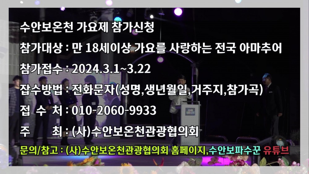 2024 제 3회 수안보온천가요제 공고 작성자최고관리자 작성일24-03-03 18:49 | 1,778 읽음 관련링크 https://youtu.be/2na71CwVhdo 840회 연결