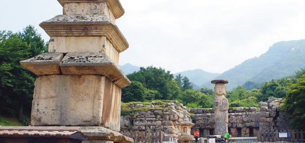 절 가운데 오층석탑(보물 95호)과 석조여래입상(보물 96호)이 팔각 석등을 사이에 두고 일렬로 있다.